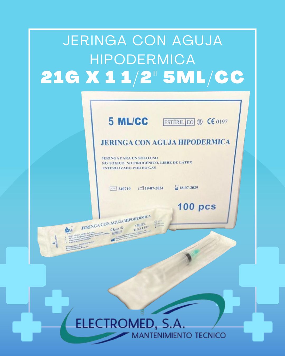 JERINGA CON AGUJA HIPODERMICA 5CC/ML 21GX 1 1/2″